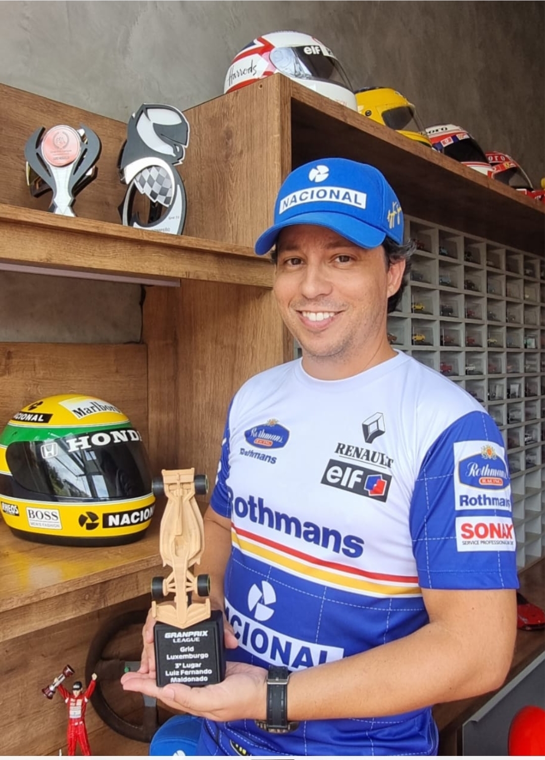 Quando o assunto é memória afetiva e paixão que atravessa décadas, a Fórmula 1 também ocupa um lugar especial. O advogado Luiz Fernando Maldonado de Almeida Lima acompanha a categoria desde o fim dos anos 1980 e mantém uma coleção que reúne miniaturas de todos os campeões da história da F1, além de itens icônicos de Ayrton Senna, como capacete, macacão, volante e uma réplica de McLaren de 1988, em tamanho real exposta em casa. Agora, essa relação começa a ganhar um novo capítulo em família. “Meu filho ganhou um LEGO da Ferrari no Natal, que ainda vamos montar juntos. Em breve, isso também fará parte da nossa história”, conta.